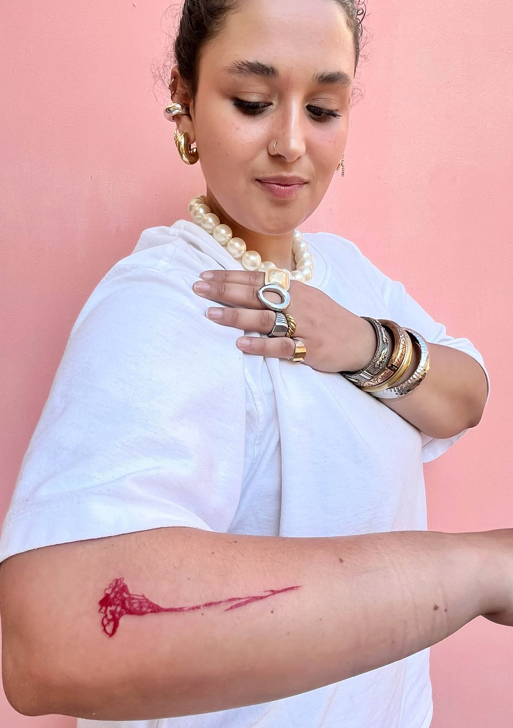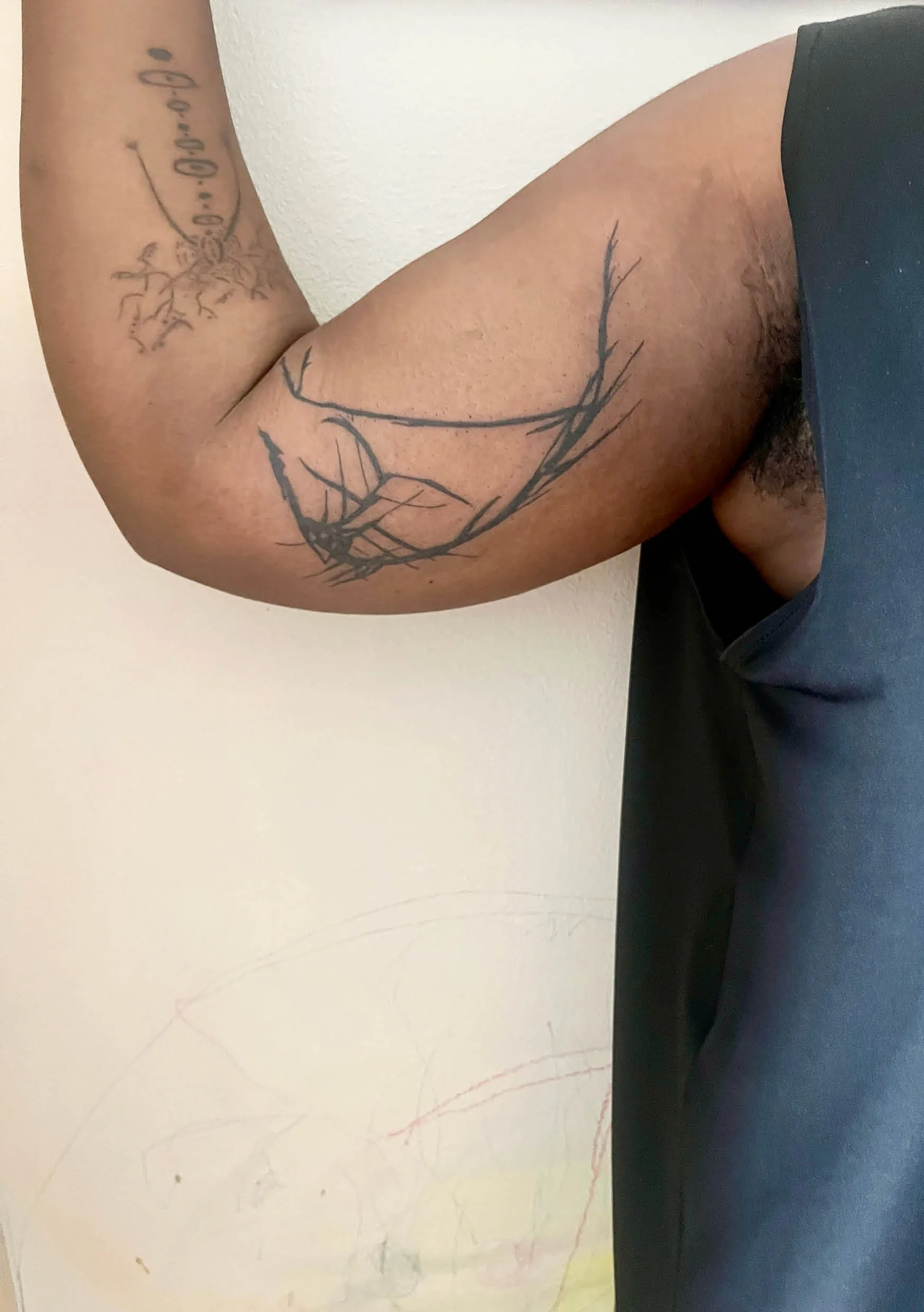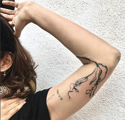 Alongside her tattoo pratice, she is an associate artist at L’Apparition Graphics where she develops mural painting projects with fellow artist Sandra de Matos since 2012. Together, they also run and program Cineclube Aparição, a film club with monthly cycles, which started in 2019 in Anjos70.