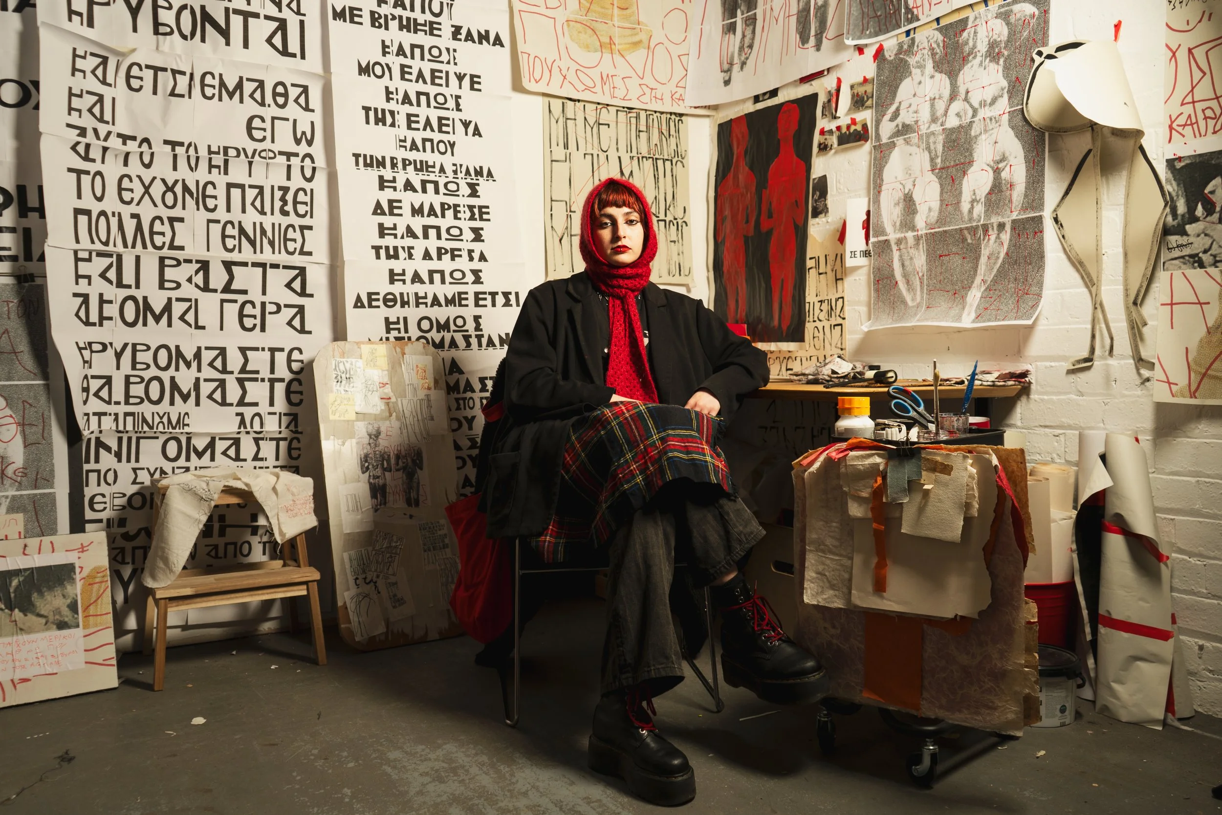 Zoe Kravvariti is an artist from Greece, currently based in Glasgow. Her practice is born through a need to be vulnerable. Understanding emotions and figuring out ways of communicating them has been a recurring aspect in her work. Femininity and its burdens on the female body has also been a theme that she finds herself constantly going back to. Her work relies on experimentation and combination of media, as she wishes to explore a variety of mediums and ways of making. Her practice through the years has focused more on handwritten typography, drawing, poetry, video performance and the use of her own body. Her intention is to create work which is interactive and acts as a safe space where the hidden, unspoken and forbidden emotions find a place to call home.